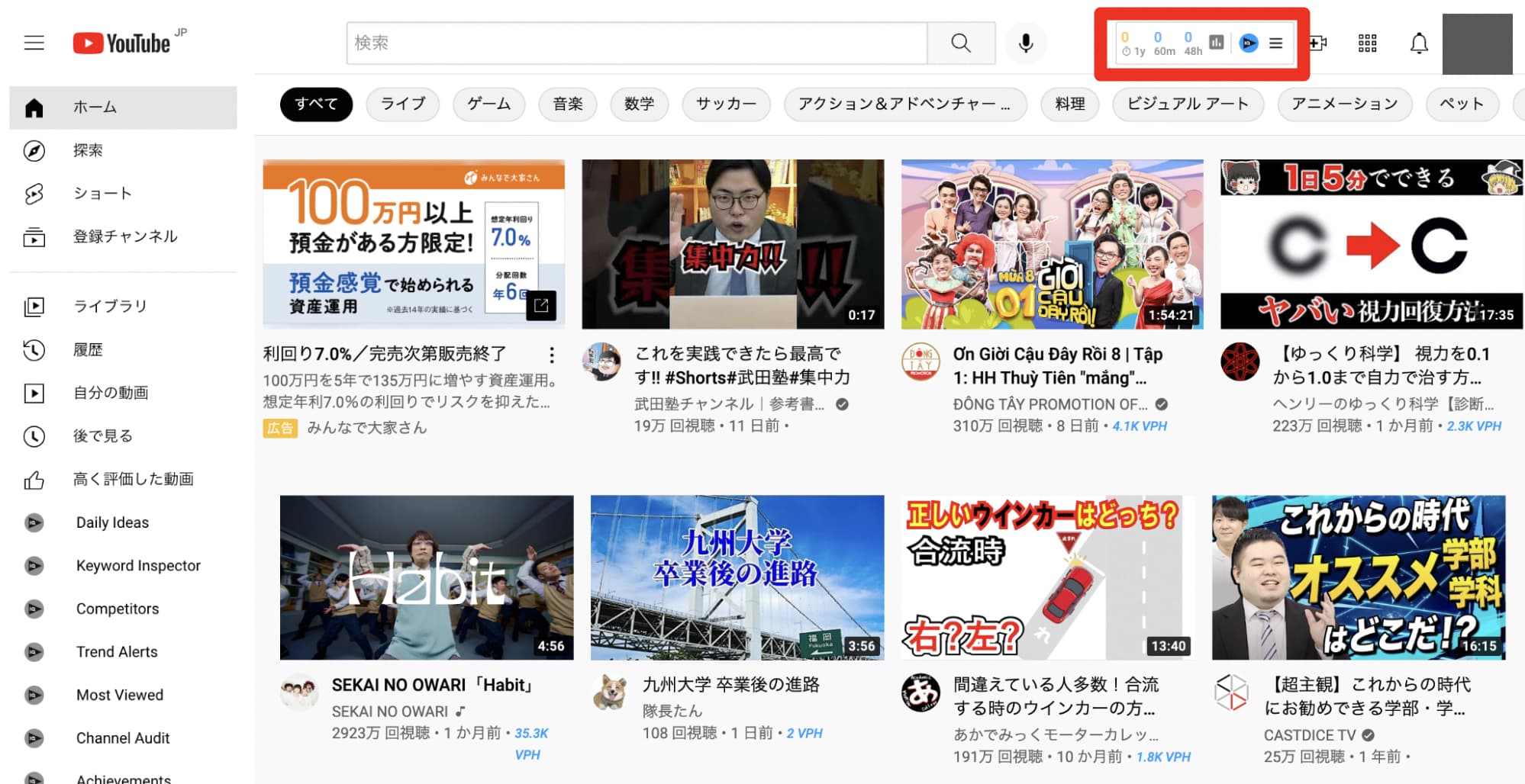 vidIQは、Google Chromeの拡張機能として利用するYouTube分析ツールです。